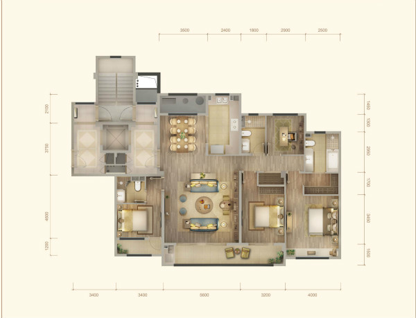 • 户型:4室2厅1厨3卫